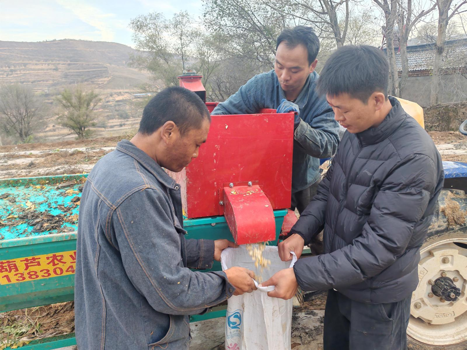 11月16日,在固原市西吉縣興平鄉(xiāng)友愛村下源組,米彥軍和米彥雄將一個個曬得金黃的西葫蘆丟入打籽機碾碎、篩凈。