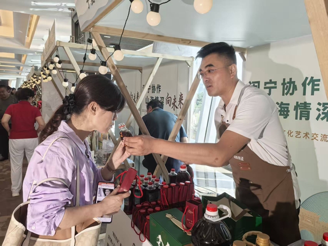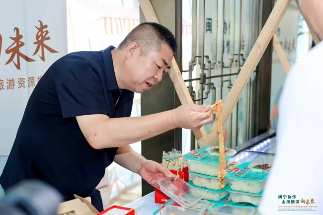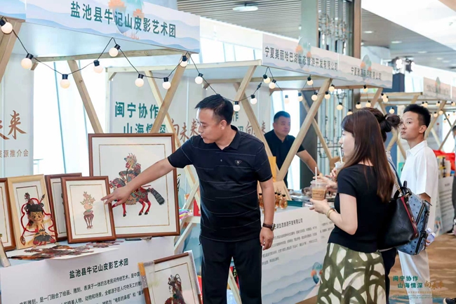 活動現(xiàn)場氣氛熱烈。與會領(lǐng)導(dǎo)為參與“閩寧協(xié)作·山海情深向未來”閩寧文化藝術(shù)交流培訓(xùn)班的學(xué)員頒發(fā)了結(jié)業(yè)證書。舞臺上,《我的灘羊情》《長城隨想》《長城關(guān)》《飲風(fēng)花馬湖》等富有鹽池縣地域特色的文化藝術(shù)精品,向現(xiàn)場嘉賓充分展現(xiàn)了鹽池縣深厚的文化歷史底蘊(yùn)。舞臺下,鹽池灘羊肉香氣飄逸,清燉羊肉、烤全羊讓現(xiàn)場嘉賓贊不絕口。羊肝辣醬、蕎麥殼耳枕、手工刺繡等非遺產(chǎn)品、文創(chuàng)手工藝品等豐富展品吸引眾多嘉賓駐足咨詢與交流,互留通訊信息,洽談合作意向。