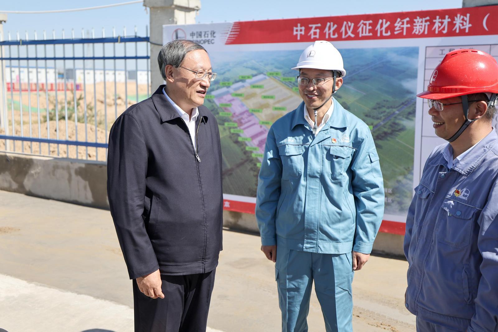 李邑飛在中石化儀征化纖項(xiàng)目現(xiàn)場,調(diào)研項(xiàng)目建設(shè)情況。