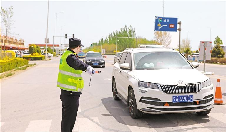 交通運輸部門引導(dǎo)車輛有序通過收費站。記者 趙磊 攝