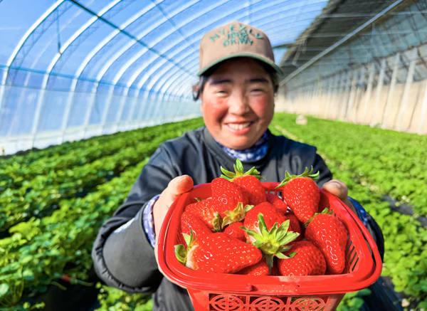 11月27日,銀川市金鳳區(qū)良田鎮(zhèn)涇龍村農戶馬繡紅展示采摘的頭茬草莓。近年來,良田鎮(zhèn)持續(xù)拓寬村民就業(yè)渠道,讓更多群眾在家門口實現(xiàn)就業(yè)增收。記者 馬楠 王洋 攝