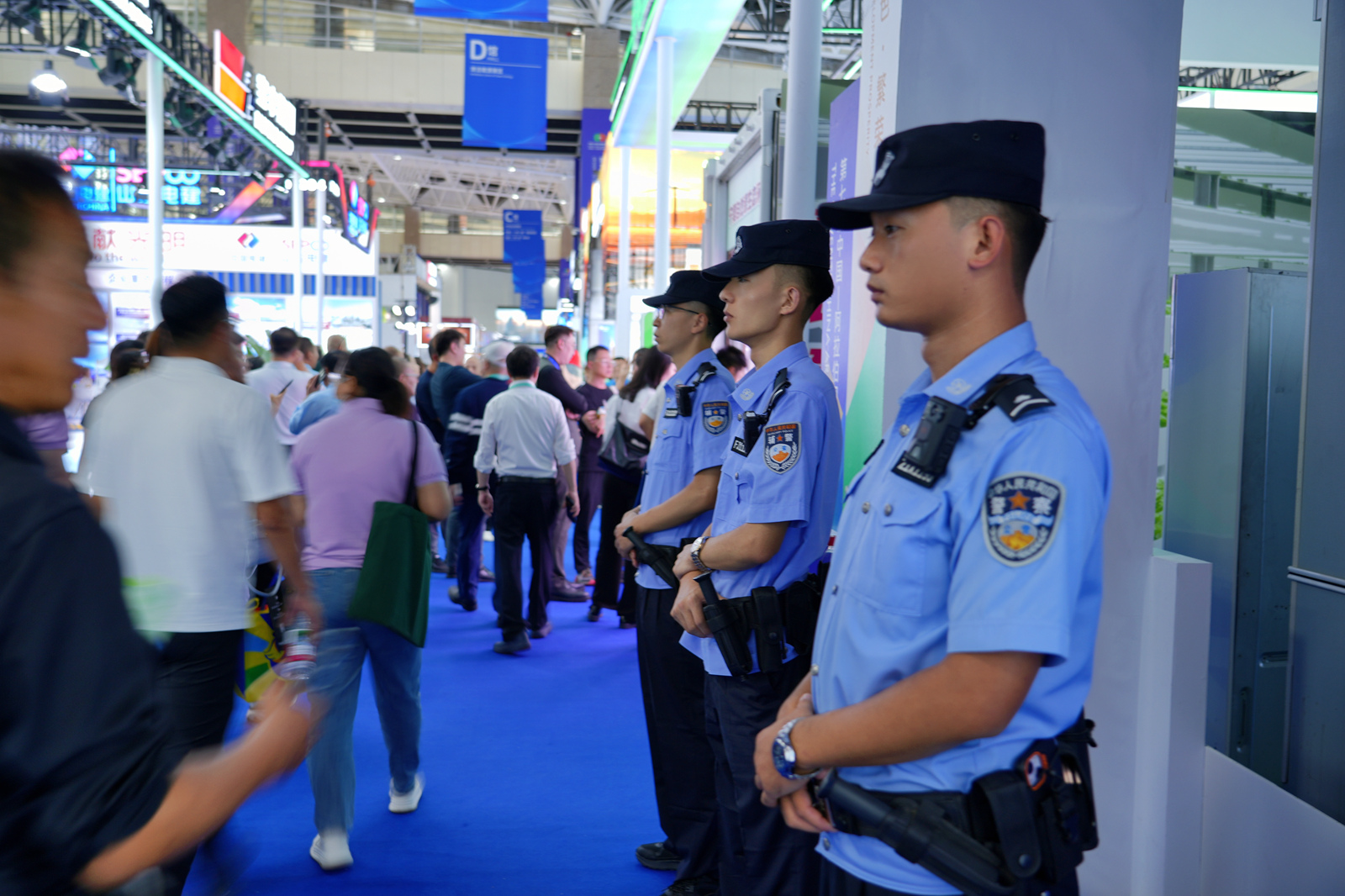 在博覽會(huì)前一天,特警隊(duì)員們手持專業(yè)設(shè)備,對(duì)各個(gè)展館開展多輪次搜排爆安全檢查。他們對(duì)展臺(tái)、通道、休息區(qū)等每個(gè)角落進(jìn)行細(xì)致排查,時(shí)而俯身探查可疑物品,時(shí)而操作儀器進(jìn)行檢測(cè),嚴(yán)謹(jǐn)細(xì)致地完成每一項(xiàng)檢查程序,為博覽會(huì)的安全舉辦提前筑起一道看不見的堅(jiān)固防線。