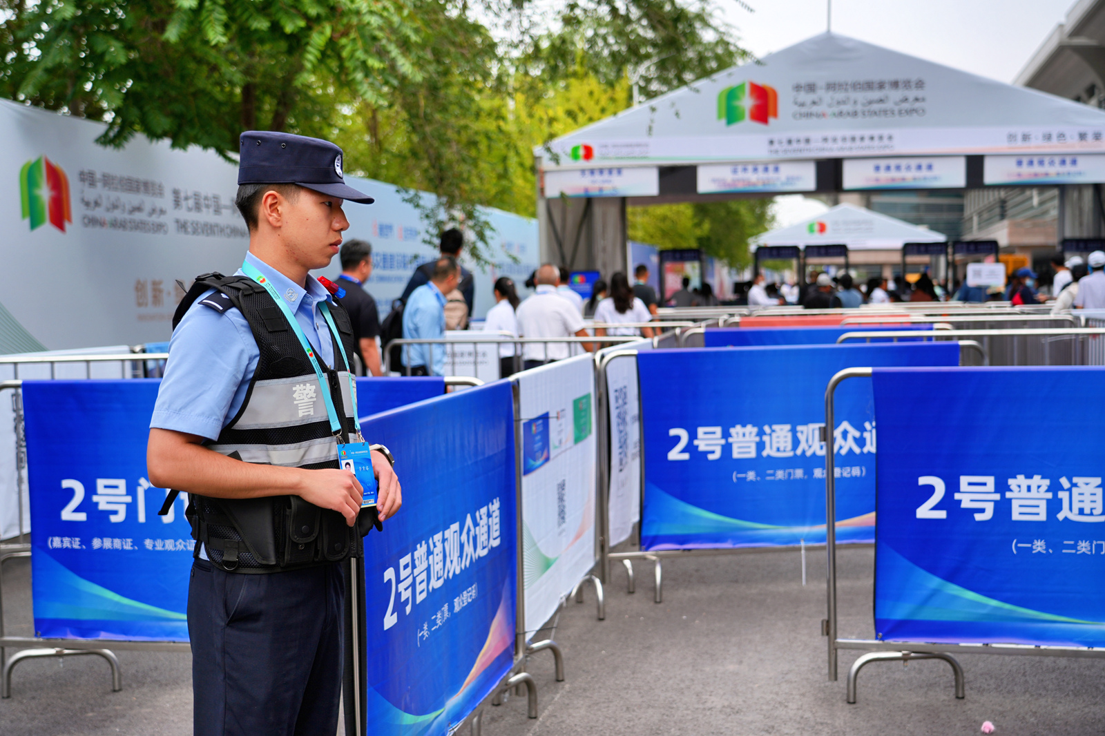 “您好,請(qǐng)過下安檢?!痹趫?chǎng)館入口,民警劉婧始終面帶微笑,耐心引導(dǎo)每一位入場(chǎng)展商和群眾。在第七屆中阿博覽會(huì)場(chǎng)館入口,一套融合智能感知、無(wú)接觸檢測(cè)和實(shí)時(shí)數(shù)據(jù)分析的智慧安檢系統(tǒng)——包括39部X光機(jī)+82部安檢門,正在高效運(yùn)行,既守牢了安全底線,也極大縮短了等候時(shí)間。