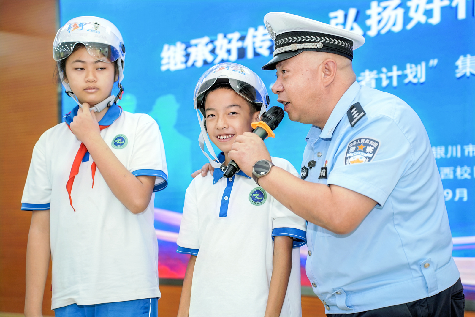 全國公安系統(tǒng)二級英模、銀川市公安局交通管理局民警楊鴻勝警官登臺,圍繞交通安全主題開展宣講。他結合真實案例,用生動幽默的語言講解了交通出行中應注意的安全事項,重點強調了“一盔一帶”的重要性,并詳細示范了“一戴兩扣”的正確佩戴方法,普及電動自行車安全騎行知識。