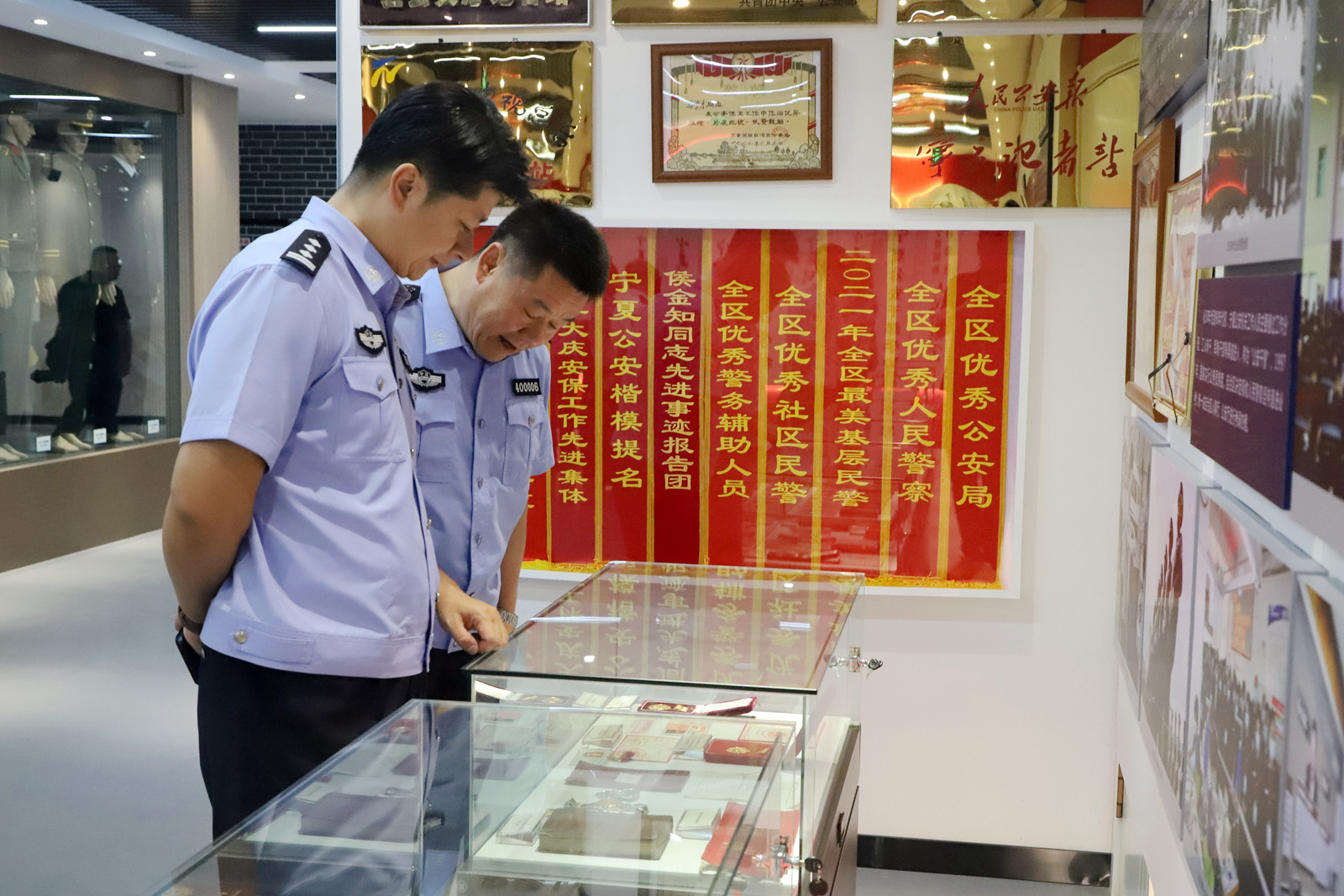 參加人員集中觀看了短片《印記:寧夏人民公安發(fā)展歷程》,并參觀博物館展廳。大家認真聽取講解員講解,深情凝望一張張生動感人的歷史照片,認真端詳一件件彌足珍貴的史料實物,不時駐足詢問,了解寧夏公安文物相關細節(jié),感受老一輩公安同志在艱苦環(huán)境中無私奉獻的忠誠執(zhí)著,感受公安英模在危難時刻挺身而出的英勇無畏,感受基層民警扎根基層服務群眾的溫暖時刻,回望新時代公安隊伍科技強警、改革創(chuàng)新的奮進足跡。