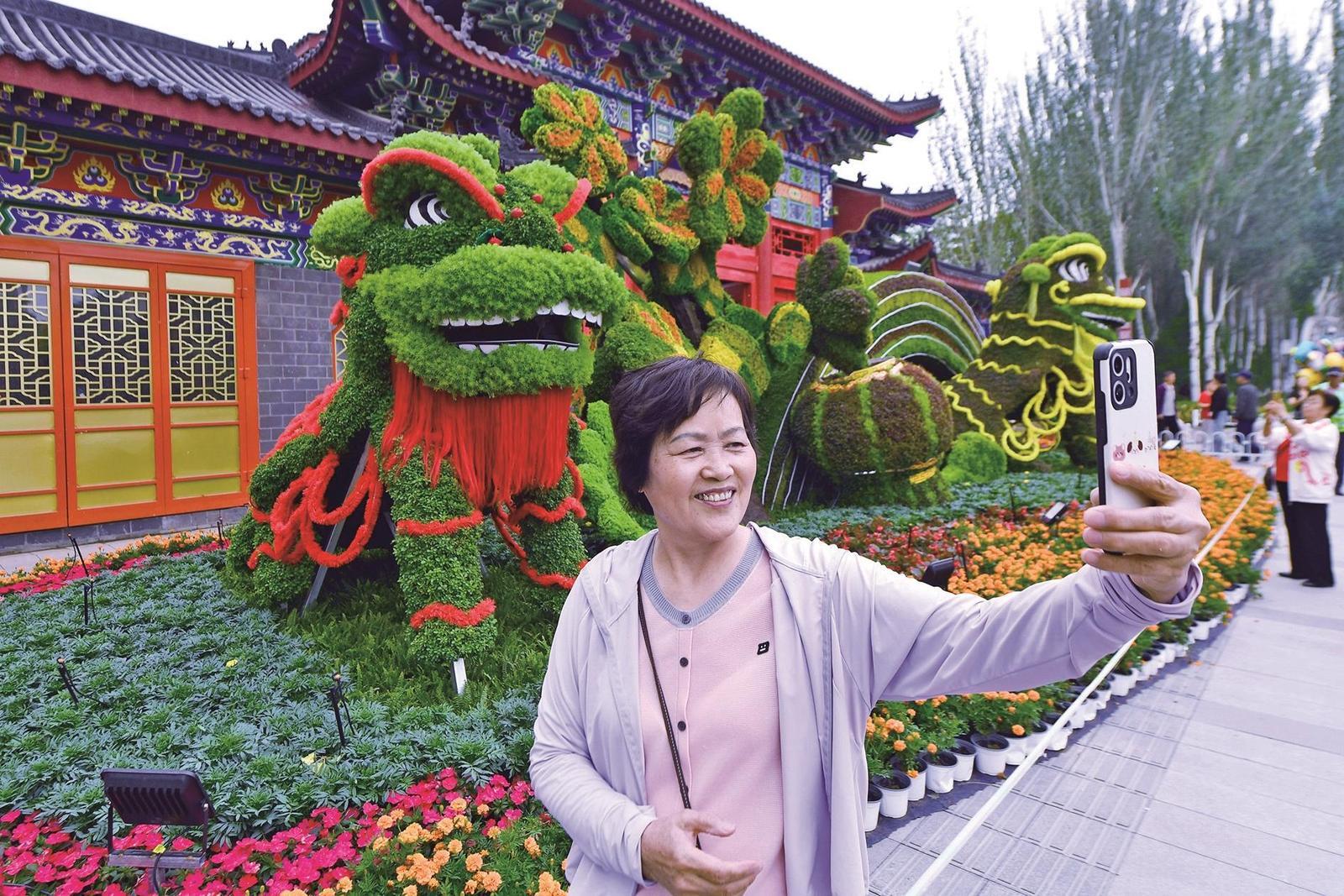 錯(cuò)落有致的鮮花布景與可愛的景觀雕塑相映成趣,為城市注入生機(jī)。銀川這座城市以花為媒、以城為景,正在花香中靜待中外來賓。(本版圖片除署名外均為記者 海坤 攝)