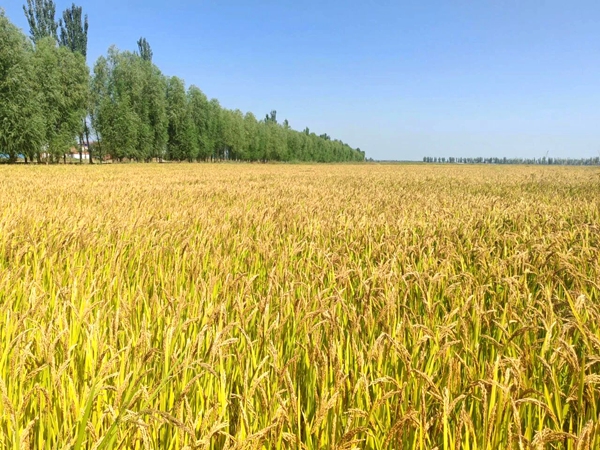 秦漢渠灌域金黃的水稻。