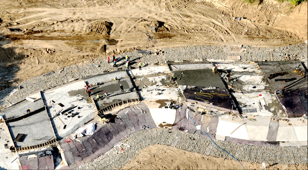 銀川市河道管理所副所長馬明介紹,目前項目建設已取得階段性成果,南環(huán)水系段10公里綠化管線鋪設完成;六盤山路、寶湖路兩座溢流堰主體填筑完工,正在進行格賓石籠基礎混凝土澆筑;來佛寺溢流堰完成鋼筋植筋作業(yè),進入模板安裝階段;湖畔路水文化廣場綠色廊道基礎混凝土澆筑完畢,文化廊架、巡河驛站、臺階施工正同步展開,整體進度符合預期。