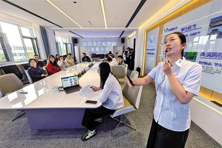 鹽池縣委網(wǎng)信辦工作人員介紹網(wǎng)絡(luò)普法相關(guān)工作。 記者 蘇克龍 攝