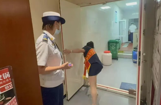 存在隱患:1.店內(nèi)北側(cè)廚房油煙管壁未及時清理;2.店內(nèi)滅火器未成組放置。