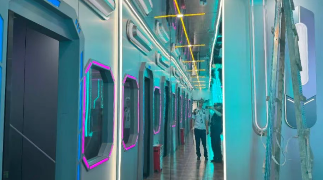 存在隱患:疏散走道盡端使用影響人員安全疏散的鏡面反光材料裝修