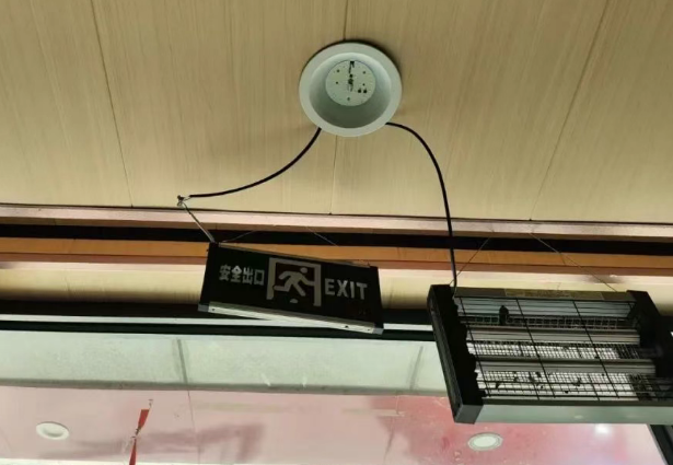 存在隱患:1.一處防火門未安裝閉門器;2.一處安全出口指示標(biāo)識位置錯誤。