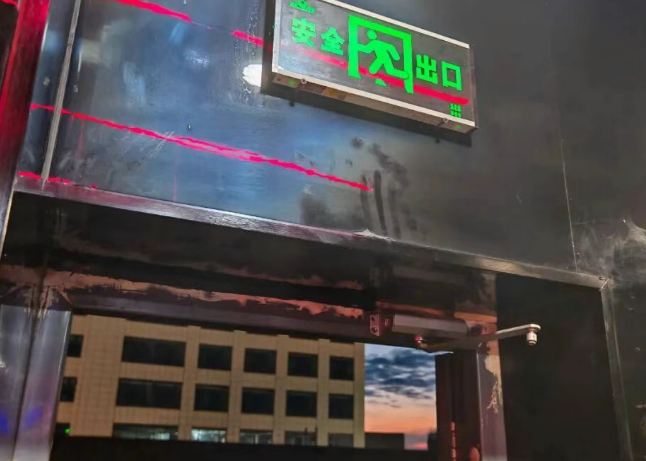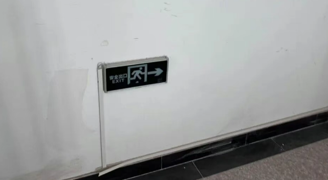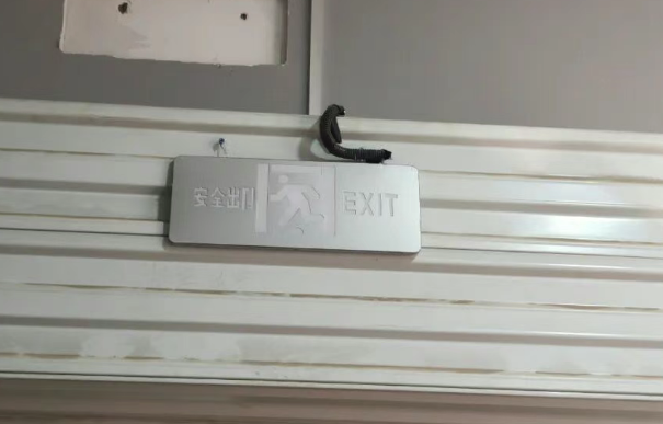 存在隱患: 1. 四層北側安全出口處防火門順序器失效;2. 四層南側安全出口處設置卷簾門;3. 四層南側安全出口處安全出口標志燈未通電。